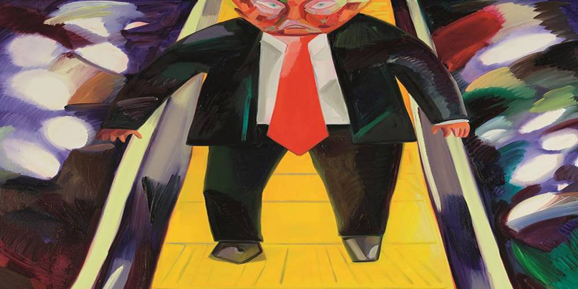 متابعة بتجــــــــــــرد: قبل أن يصبح رئيسًا للولايات المتحدة، أنفق دونالد ترامب 10000 دولار من مؤسسته، لشراء لوحة زيتية طولها ستة أقدام لنفسه في مزاد. وفي الأسبوع المقبل، ستتاح للرئيس الأميركي فرصة للمزايدة على صورة أكبر، وإن كانت أقل إرضاءً، حيث تصور لوحة للفنانة دانا شوتز، شخصية ممتلئة الجسم مألوفة بعيون منتفخة تنزل على لسلم كهربائي ذهبي.