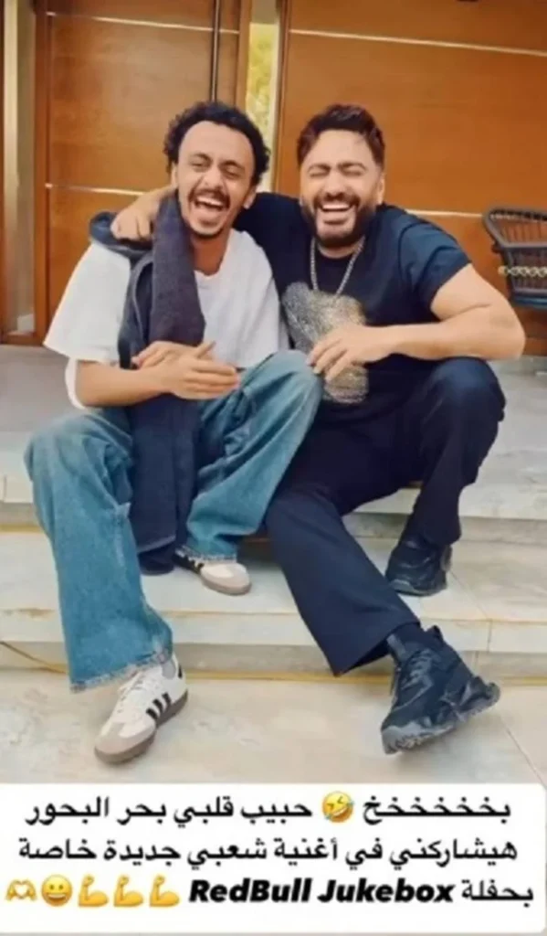 تامر كشف عن هوية شريكه في الأغنية من خلال منشور عبر حسابه الرسمي على “إنستغرام”، حيث أعاد نشر صورة سبق أن شاركها مع الجمهور وكان قد أخفى فيها ملامح الضيف، وعلّق عليها قائلًا: “حبيب قلبي بحر البحور هيشاركني في أغنية شعبي.”