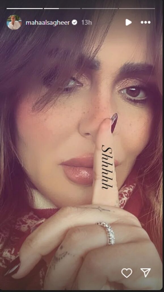 وفوجئ الجمهور بحذف المنشور ثم بعدها وضعت على “إنستغرام” صورة لها وهي تضع أصبعها على فمها وكتبت عليها “هشششش”، وتعمدت أن تظهر فيها خاتم الزواج، في إشارة الى وجوب سكوت مطلقي الشائعات، وأتبعتها بصورة أخرى كتبت فيها باللغة الإنكليزية: “سوشيال ميديا.. وقت للراحة.. كفى”.