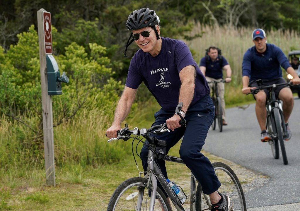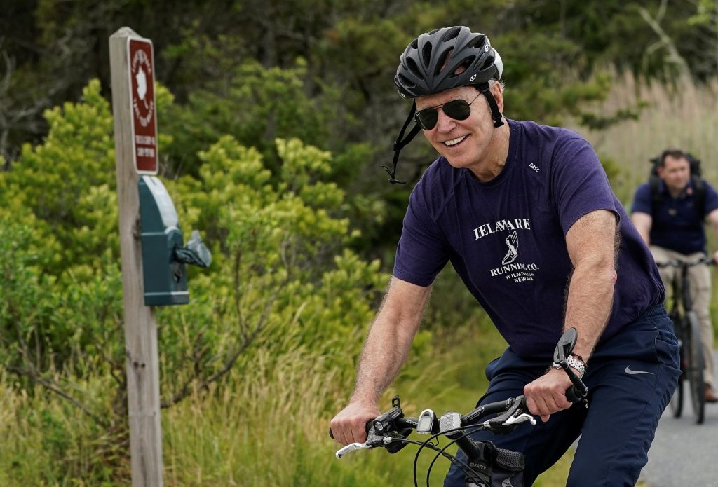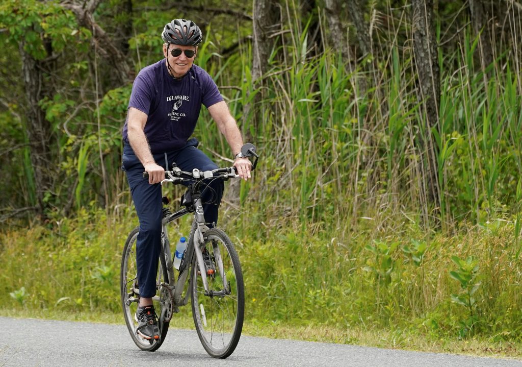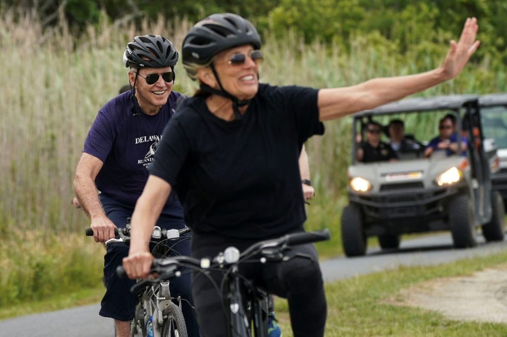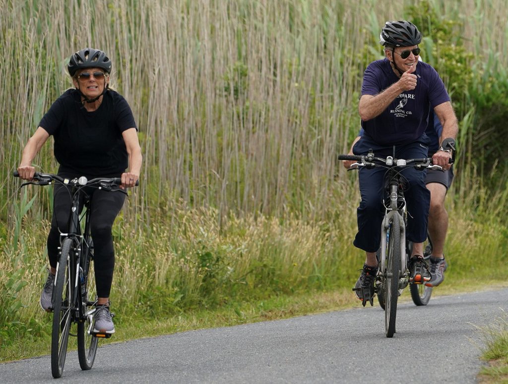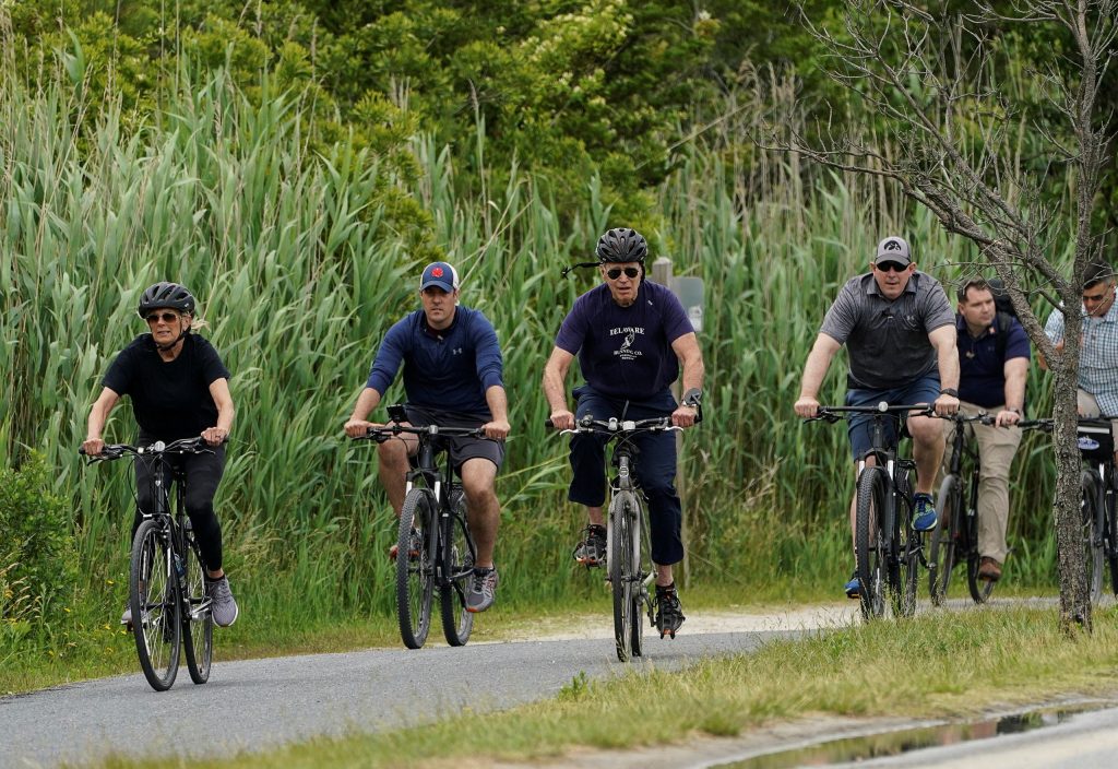 قاد الرئيس والسيدة الأولى، فضلاً عن عدد صغير من أفراد الحراسة خلفهما، الدراجات في ممر بحديقة كيب هينلوبين الوطنية قرب منزلهما المطل على الشاطئ في ديلاوير.