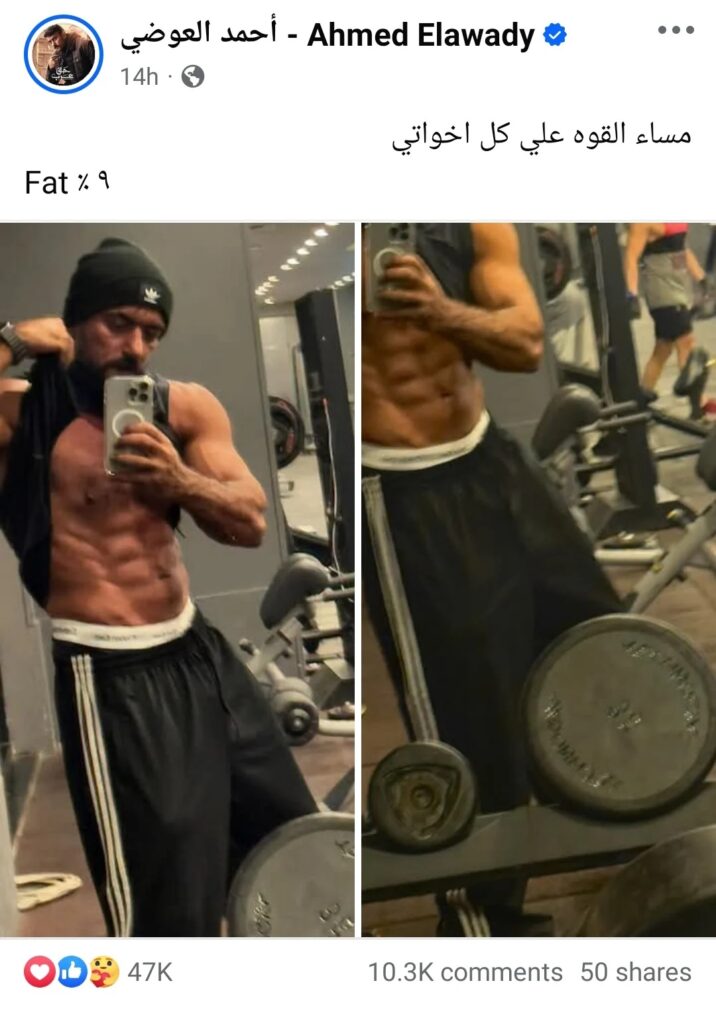 متابعة بتجــرد: نشر الفنان أحمد العوضي عبر حسابه الرسمي على “فيسبوك” صورة جديدة له ظهر فيها من داخل صالة “الجيم”، أظهر فيها لياقته البدنية وعضلاته القوية، استعداداً لتصوير مسلسله الجديد “فهد البطل”، والمقرر أن يخوض به الموسم الرمضاني المقبل 2025.