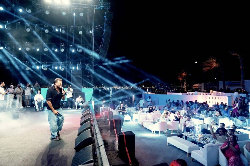 متابعة بتجــرد: استهلّ الفنان رامي صبري فعاليات حفل افتتاح مهرجان “ليالي مراسي” الغنائي في الساحل الشمالي، وسط حضور جماهيري ضخم تجاوز الطاقة الاستيعابية للمكان، وجمع عدداً كبيراً من المشاهير من مختلف الجنسيات العربية.