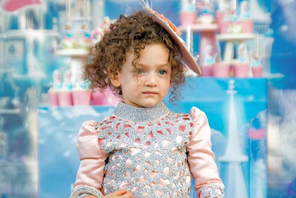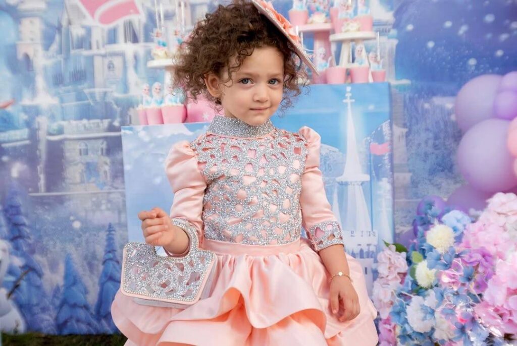 تألقت الطفلة ميراي بفستان ملكي وتاج طفولي زادها جمالاً، وبرز شعرها الكيرلي الذهبي الذي ورثته عن والدتها إيمان الباني، فيما لفتت الأنظار بعفويتها وتعلّقها الواضح بوالدها الذي لم تفارقه طوال الاحتفال.