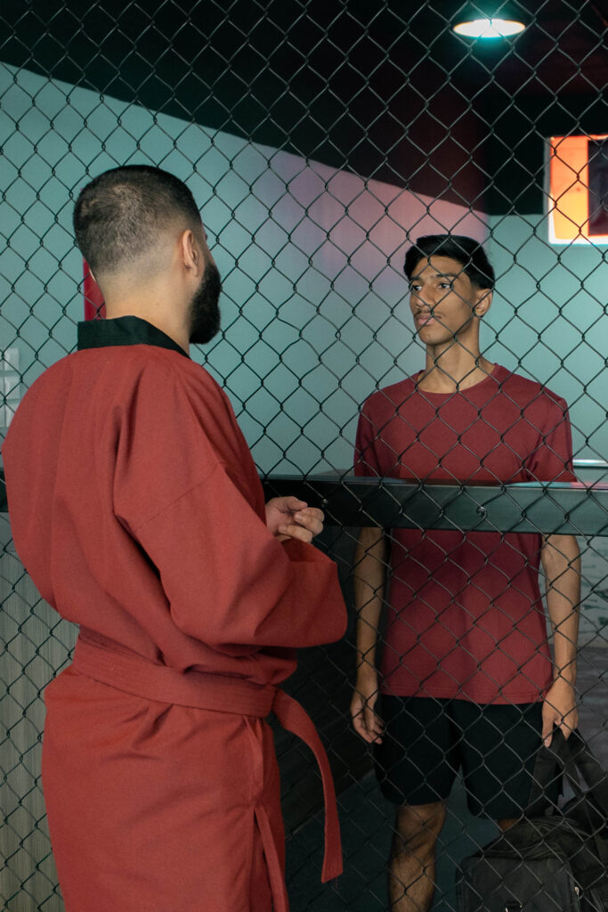 ويُركز المخرج على الأبطال، لافتاً إلى أن لديه “البطل والبطل”، أي سيف المالكي (راكان) وسلطان مسيري (خالد)، وهم من أبطال الكاراتيه ومن أبناء الرياض. ويُشير إلى عمله معهما وتدريبهما، من خلال تدريبات تمثيل محترفة، ولاحظ تطور أداءهما التمثيلي”. “الأولاد أذكياء وسريعي البديهة وكانوا يرفعون طاقة الحماس خلال التصوير”. ويحرص الجندل في معظم أعماله بأن يستكشف ممثلين جدد. يُبين المخرج خلفية شخصية ركان، لافتاً إلى أنه “توأم سيامي، وخلال عملية الفصل للتوأم توفي أخوه. وهذه الحالة سببت للوالد صدمة أدّت إلى رفضه للابن الباقي على قيد الحياة واتهامه بأنه السبب في وفاة توأمه، فيما يعيش الابن صراعًا داخليًا بينه وبين نفسه ويظن أنه السبب في موت أخيه”، لافتا إلى “صراعات داخلية كبيرة يعيشها راكان في سياق الأحداث”. ويُضيف المخرج أن الصراع الثاني هو علاقته مع أبيه، و”الغضب الذي يحاول السيطرة عليه داخل البيت، لكن كيف ينعكس هذا الأمر على ردود أفعال راكان خارج المنزل؟”.
