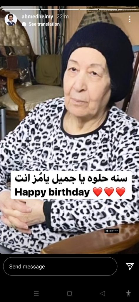 وتأتي تلك الصورة بمناسبة الاحتفال بعيد ميلاد والدته، إذ قام أحمد حلمي بتهنئة والدته، مرفقاً أنغام أغنية “ماما يا حلوة”، للفنانة شادية، وكتب قائلاً: “سنه حلوة يا جميل يا مز انت.. Happy birthday”.