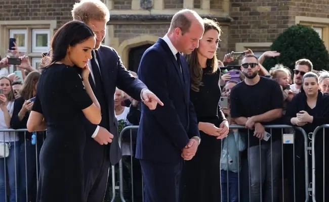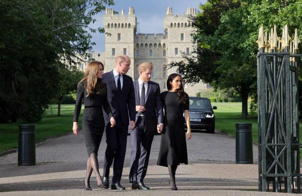وتصدّرت صور الأميرين الشقيقين وزوجتيهما يرتدون ملابس الحداد وقد بدا الوجوم على وجوهم غلافات كل الصحف اليومية تقريباً. وعنونت “ذي ميرور” أن هؤلاء “اجتمعوا من أجل الجدة”، ملاحِظة أن “وليام يمدّ غصن زيتون إلى هاري وميغن بعد وفاة الملكة”.