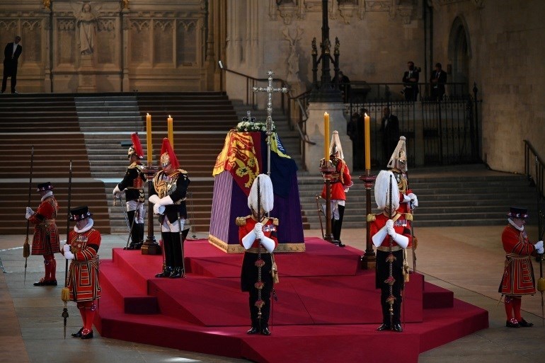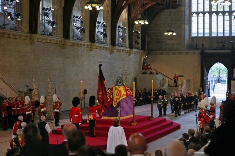 بين تقرير آخر، نشرته “BBC”، أن جثمان الملكة تم وضعه في قاعة وستمنستر، وهي جزء من مبنى قصر وستمنستر، الذي يضمّ البرلمان البريطاني، وسيكون مفتوحاً بشكل يومي على مدار الساعة، وهو الأمر الذي تم ابتداءً من يوم أمس الخميس، وسيسمح لكل من يرغب بإلقاء التحية الأخيرة على الملكة بالدخول للمكان، وسيبقى في هذه القاعة حتى صباح يوم الإثنين القادم، الموعد الرسمي لجنازتها.