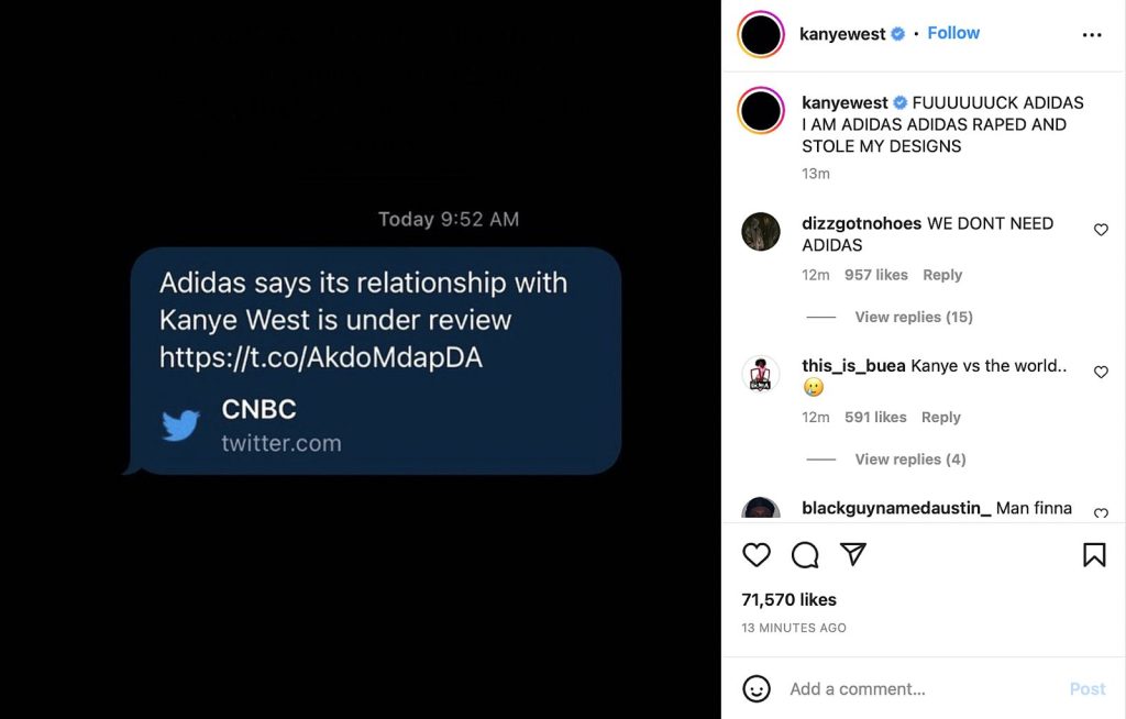 وكان ويست منذ فترة قصيرة قد اتهم شركة أديداس بسرقة تصاميمه من خلال منشور شاركه على صفحته الخاصة على إنستغرام.