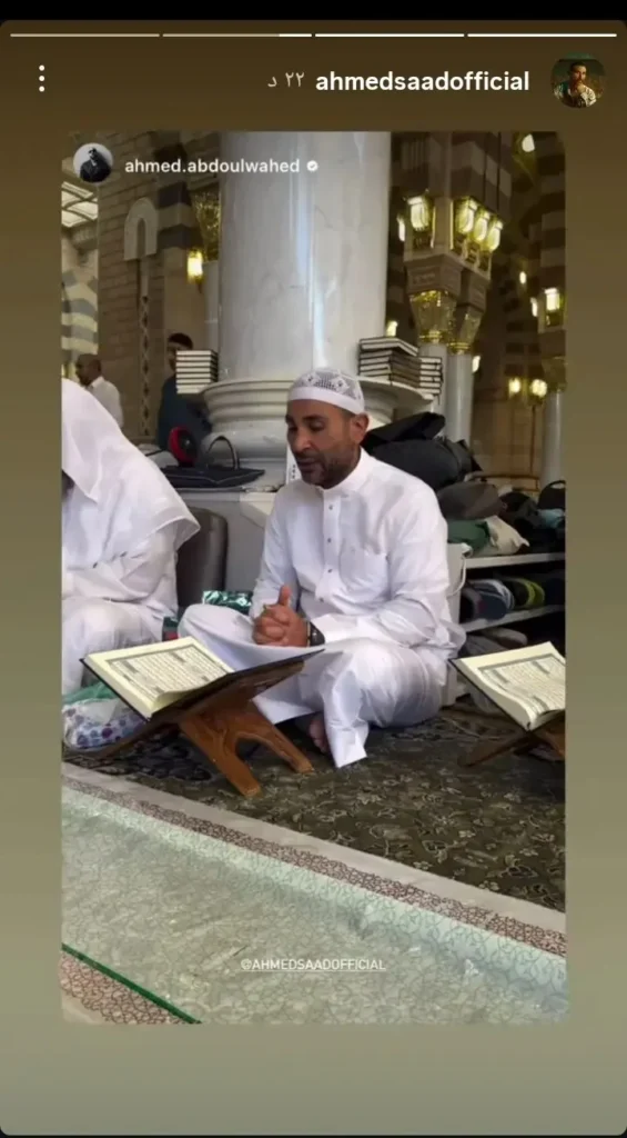 متابعة بتجــرد: أثار الفنان أحمد سعد جدلًا واسعًا خلال الساعات الماضية بعد أن شارك جمهوره عبر خاصية القصص المصوّرة على حسابه الرسمي في “إنستغرام”، لقطات من زيارته للمدينة المنوّرة، ظهر فيها وهو يتلو آيات من القرآن الكريم داخل المسجد النبوي، ما أثار تفاعلاً كبيرًا بين المتابعين على مواقع التواصل الاجتماعي.