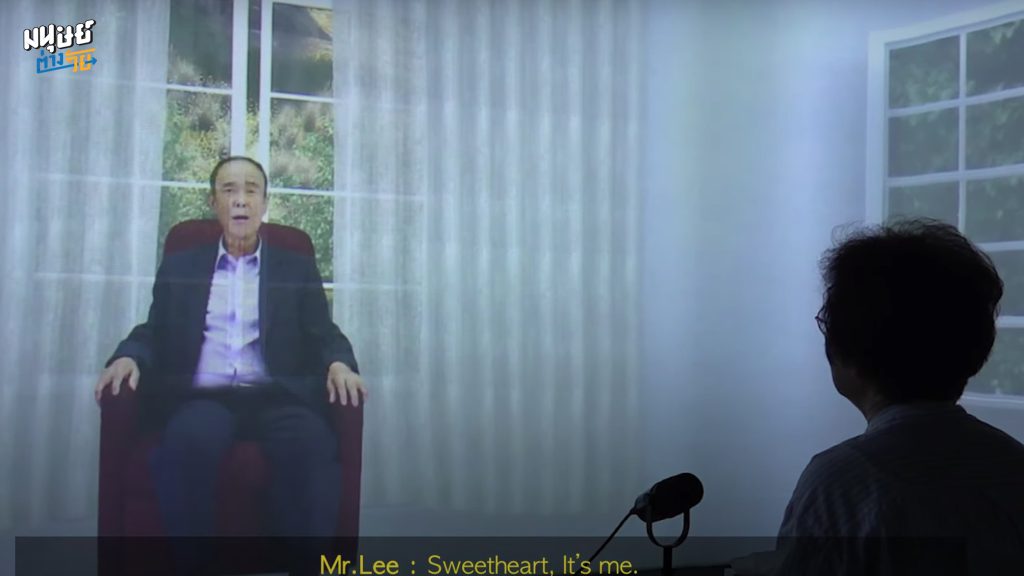 في فيديو ترويجي، تجلس ريو سون يون أمام ميكروفون وشاشة عملاقة، يظهر فيها زوجها الذي توفي قبل بضعة أشهر. ويقول لها “عزيزتي. هذا أنا”، لتنهمر دموعها وتبدأ ما يشبه الحوار معه.