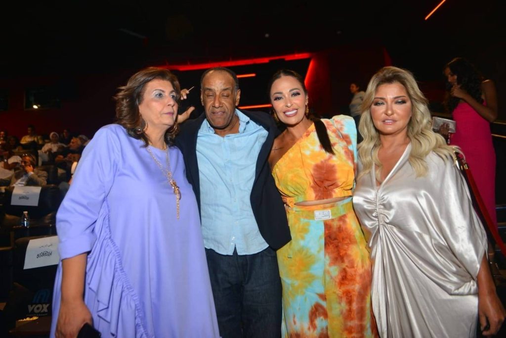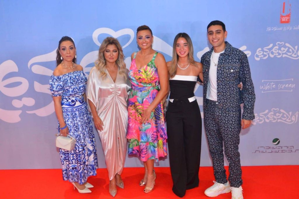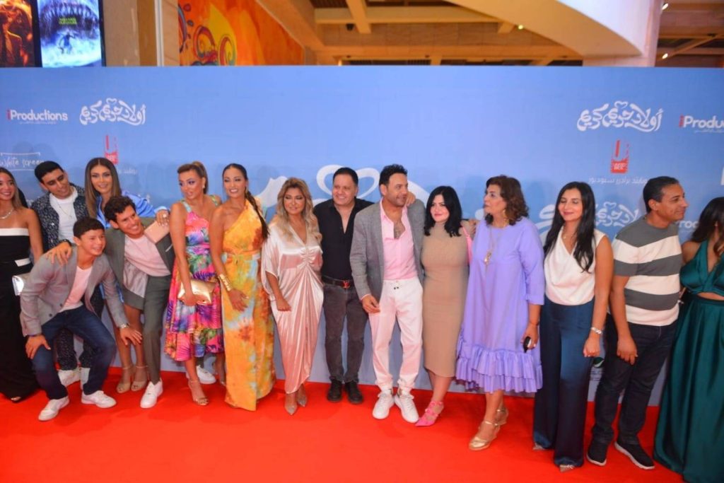 وظهرت نجمات الفيلم بإطلالات صيفية مبهجة هيث اتسمت فساتينهن بألوان ساطعة، وحرص مصطفى قمر على احتضان نجله تيام على السجادة الحمراء مهنئاً إياه بنجاحه في دوره في الفيلم.