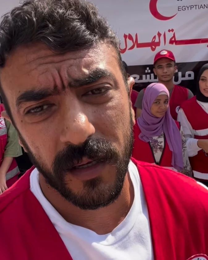 وتحدث العوضي عن ضرورة مساعدة أهالي غزة، خلال جولته في الهلال الأحمر، قائلاً: “الهلال الأحمر منظمة كبيرة، ويبذلون جهداً عظيماً، ومشارك فيه مجموعة شباب زي الورد، أنا بناشد كل إخواتي على المنصات لازم يتبرعوا”.