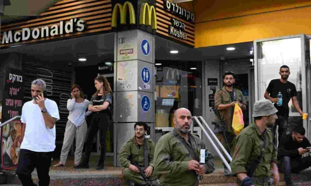في أيام الحرب الإسرائيلية الأولى على غزة، نشر فرع “ماكدونالدز” في إسرائيل بيانا وصورا لتبرعه لجيش الاحتلال الإسرائيلي بأكثر من 4000 وجبة يوميا، ونشر صوراً لتسلم الجنود هذه الوجبات.