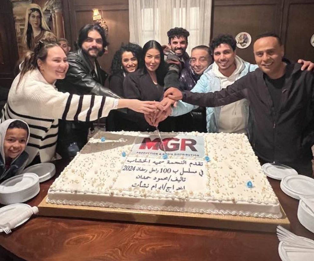سمية الخشاب تحتفل مع طاقم مسلسلها الجديد بأوّل يوم تصوير