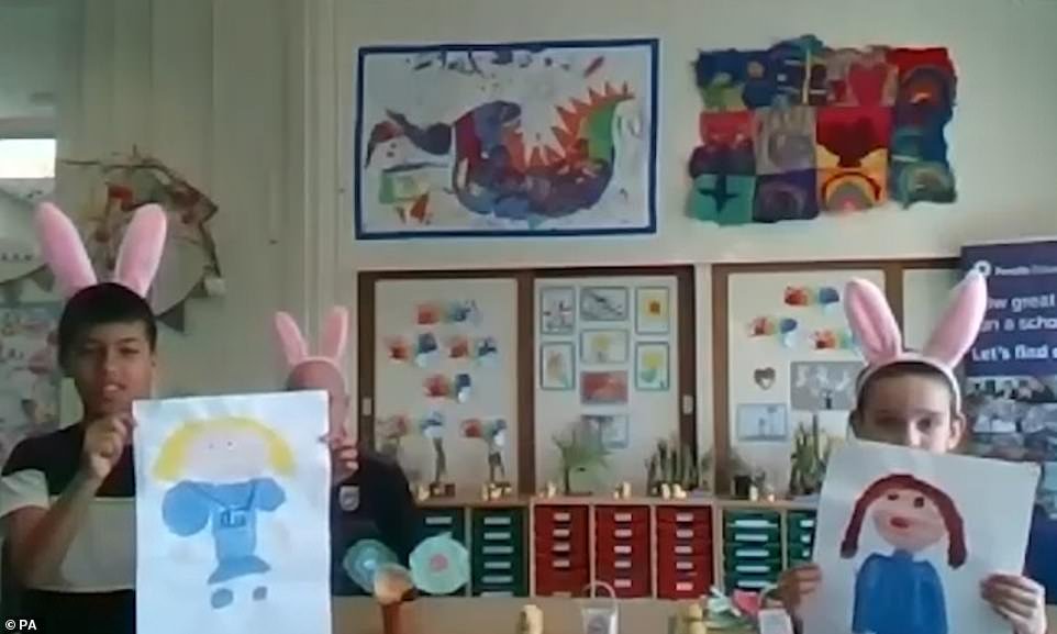 وفي التّفاصيل، فجاءت هذه الخطوة مع اقتراب عيد الفصح، حيث ظهر الأطفال في أكاديمية كاسترتون الابتدائية في لانكشاير مستعدين للعيد بارتداء آذان الأرانب على رؤوسهم، بينما كان كل من وليام وكيت يضحكان، وثم قدما لهم باقة زهور افتراضية مصنوعة من الورق.