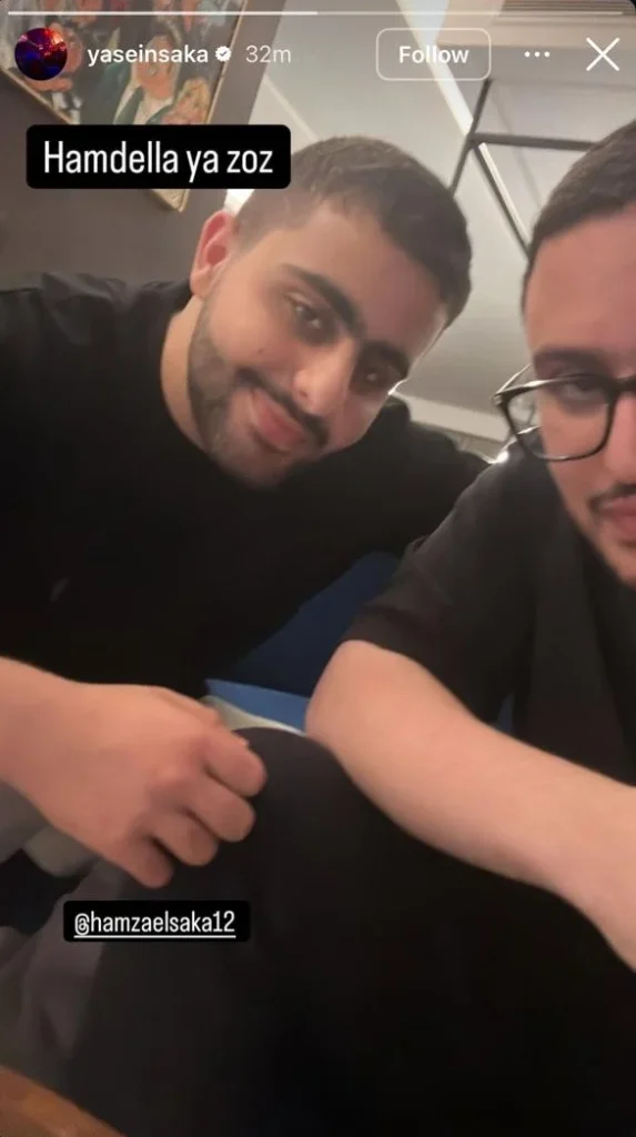 وظهر حمزة السقا في الصورة على سرير في المستشفى، بينما اكتفى ياسين بالتعليق قائلًا: “الحمد لله على السلامة”.