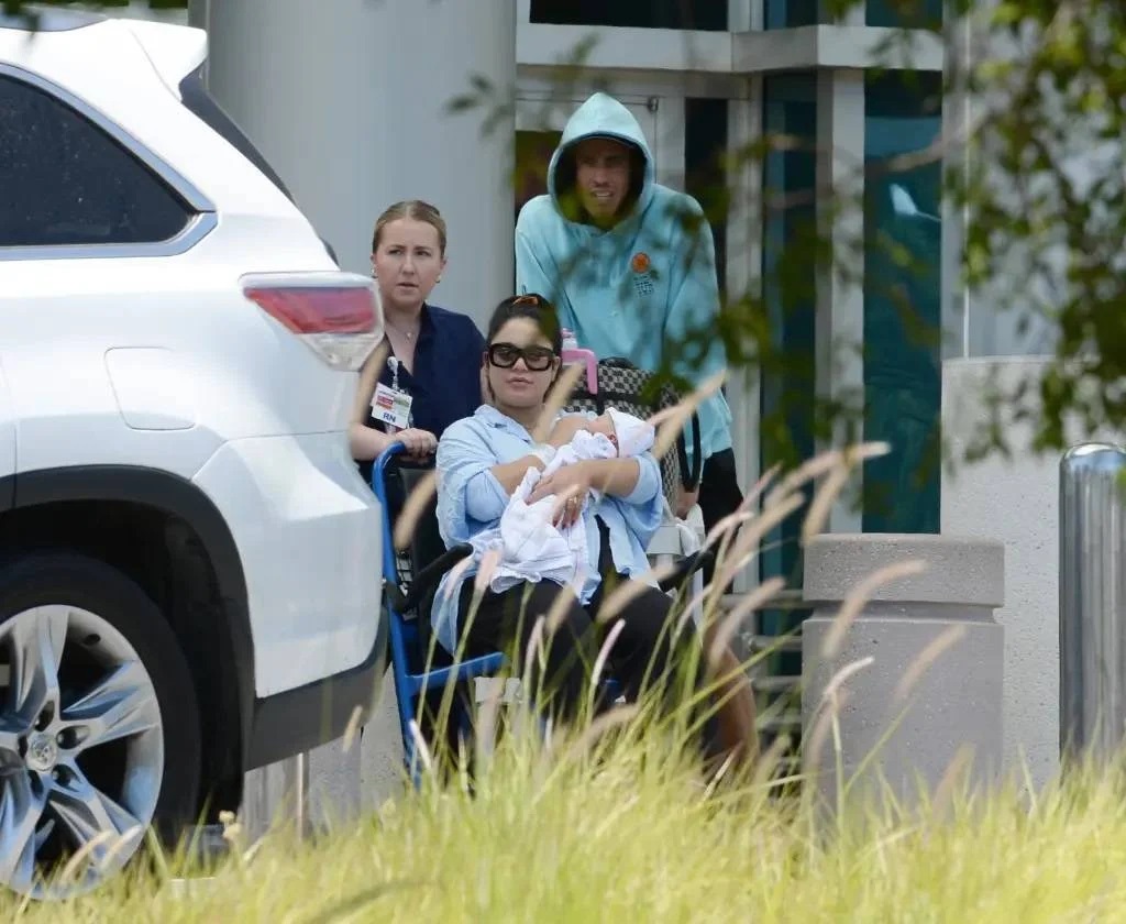 متابعة بتجــرد: أنجبت فانيسا هادجنز طفلها الأول من زوجها كول تاكر، وفق ما كشفت مجموعة من الصور التي رصدت العائلة السعيدة أثناء مغادرة مستشفى في سانتا مونيكا بكاليفورنيا، أمس (الأربعاء)، والذي يصادف عيد ميلاد الزوج الثامن والعشرين.