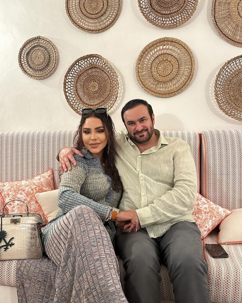وشاركت النجمه الإماراتية متابعيها على انستغرام بصورة جديدة لها برفقة زوجها، ظهرت فيها في غاية الترتيب والأناقة، ولفتت الأنظار بفستان صيفي أنيق نسقته بعناية مع حقيبة يد فخمة مزينة بشعار المملكة العربية السعودية.