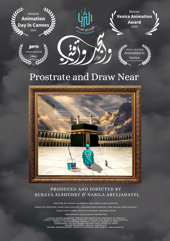 متابعة بتجــرد: تعرض منصة “شاهد” للفيديو حسب الطلب المنضوية تحت مظلة “مجموعة MBC” حصرياً فيلم الرسوم المتحركة السعودي “واسجد واقترب” الحائز على جائزة مهرجان كان السينمائي بدورته السابعة والسبعين. الفيلم من إخراج وإنتاج ثريا الشهري، وابنتها الفنانة التشكيلية نبيلة أبو الجدايل، وترتكز فكرته على اللوحة الأصلية للفنانة السعودية نبيلة أبو الجدايل وتحمل عنوان “واسجد واقترب”، والتي رسمتها في عام ٢٠٢٠ خلال انتشار جائحة كورونا.