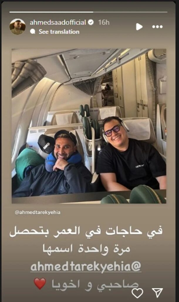 وأعاد أحمد سعد نشر الصورة عبر حسابه على “إنستجرام” وعلق قائلًا: “في حاجات بتحصل ف العمر مرة واحدة اسمها أحمد طارق يحيى صحبي وأخويا”.