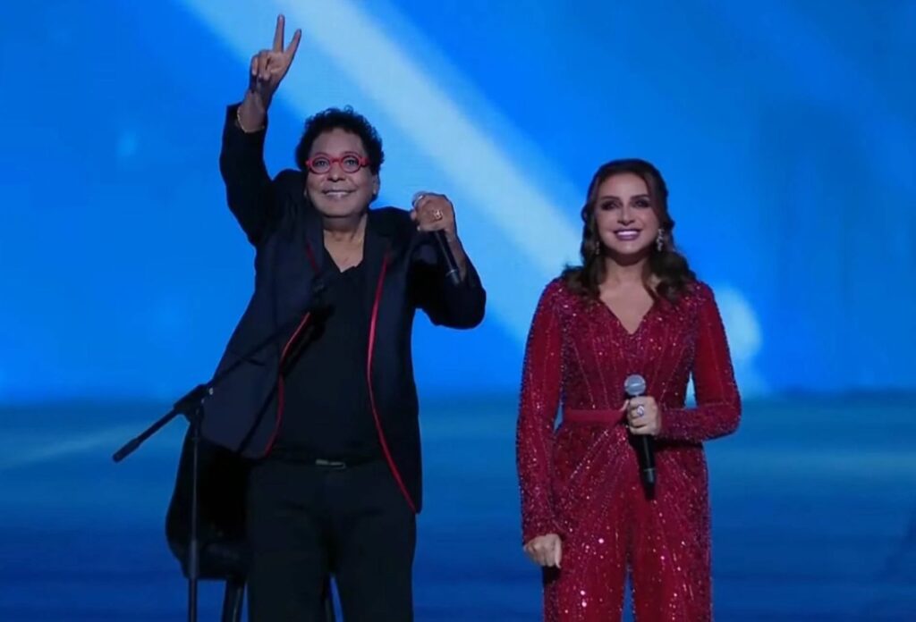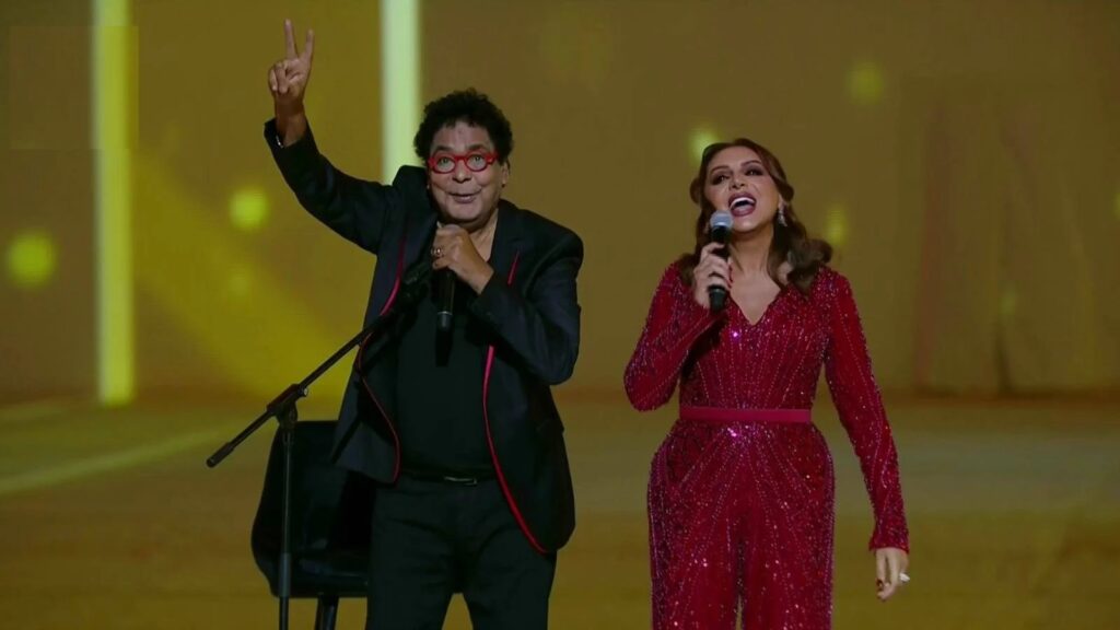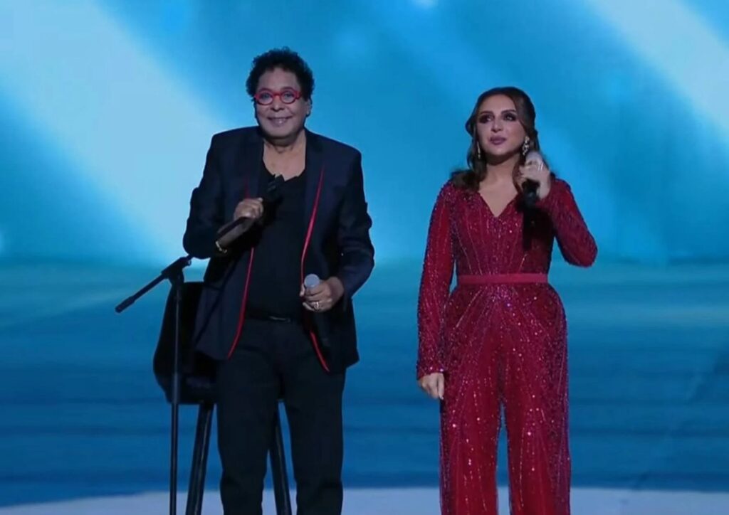 وتخلل الاحتفال العديد من الفقرات الفنية، أبرزها أوبريت “خلينا العالم يتفرج”، بمشاركة الفنانين محمد فؤاد، هشام عباس، حكيم، بلاك تيما، وحميد الشاعري، حيث قدموا أوبريت يعكس روح التحدي والانتصار.