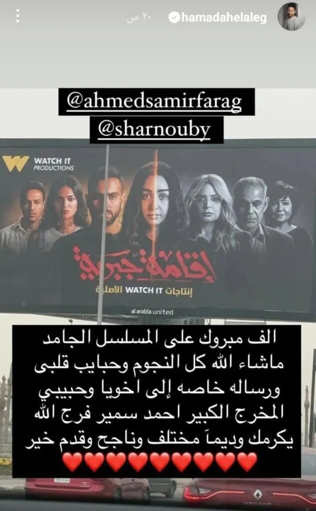 متابعة بتجــرد: شارك النجم حمادة هلال، عبر خاصية القصص المصوّرة الملحقة بحسابه الشخصي في “إنستغرام”، بوستر مسلسل “إقامة جبرية”، وجّه من خلاله رسالة دعم الى صنّاع العمل وأبطاله بمناسبة عرض أولى حلقاته على إحدى المنصات الرقمية.