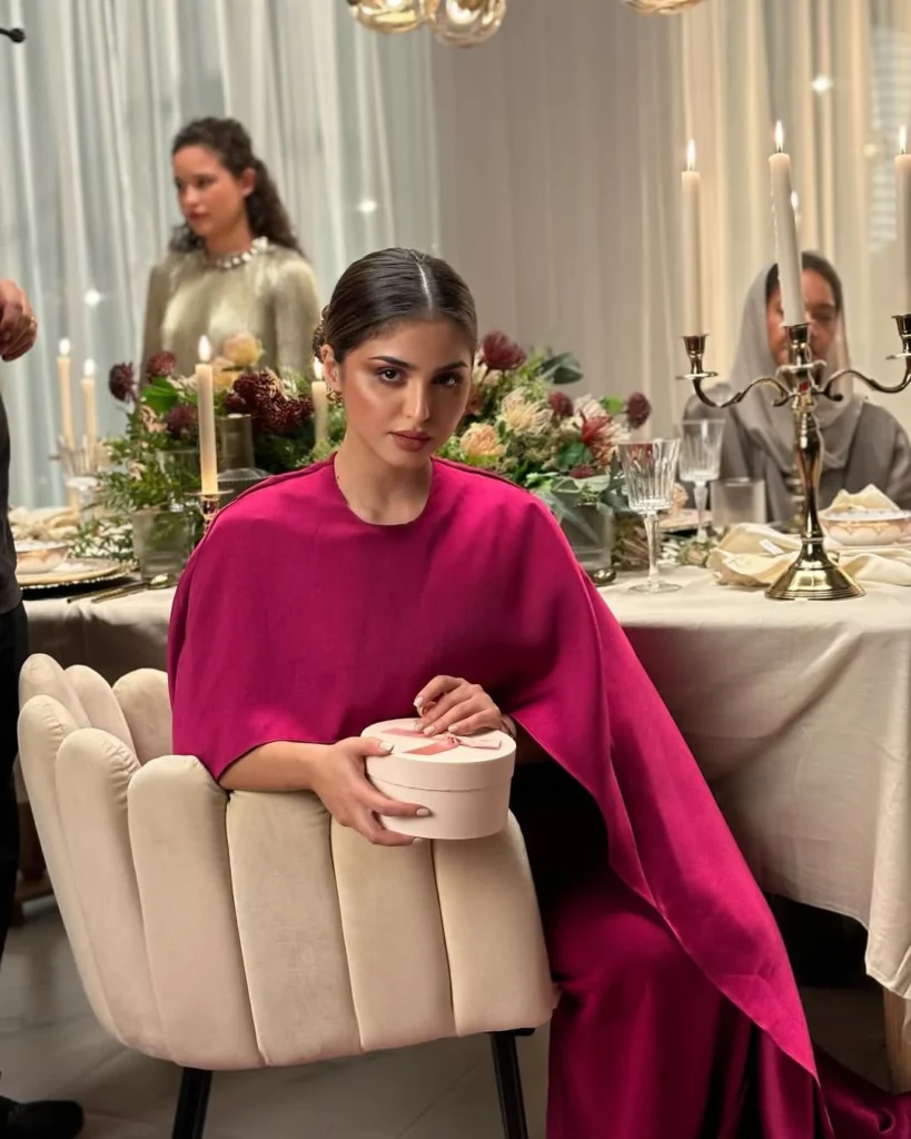 وأطلّت الفنانة البحرينية بصور أخرى بعباءة أنيقة باللون الفوشيا بتصميم راقٍ يناسب الإفطار ومناسبات السحور، وبدت في غاية الجمال بمكياج قوي يبرز ملامحها الجميلة، إضافة إلى شغفها في عالم الموضة الذي تحرص دائماً على إظهاره للجمهور.
