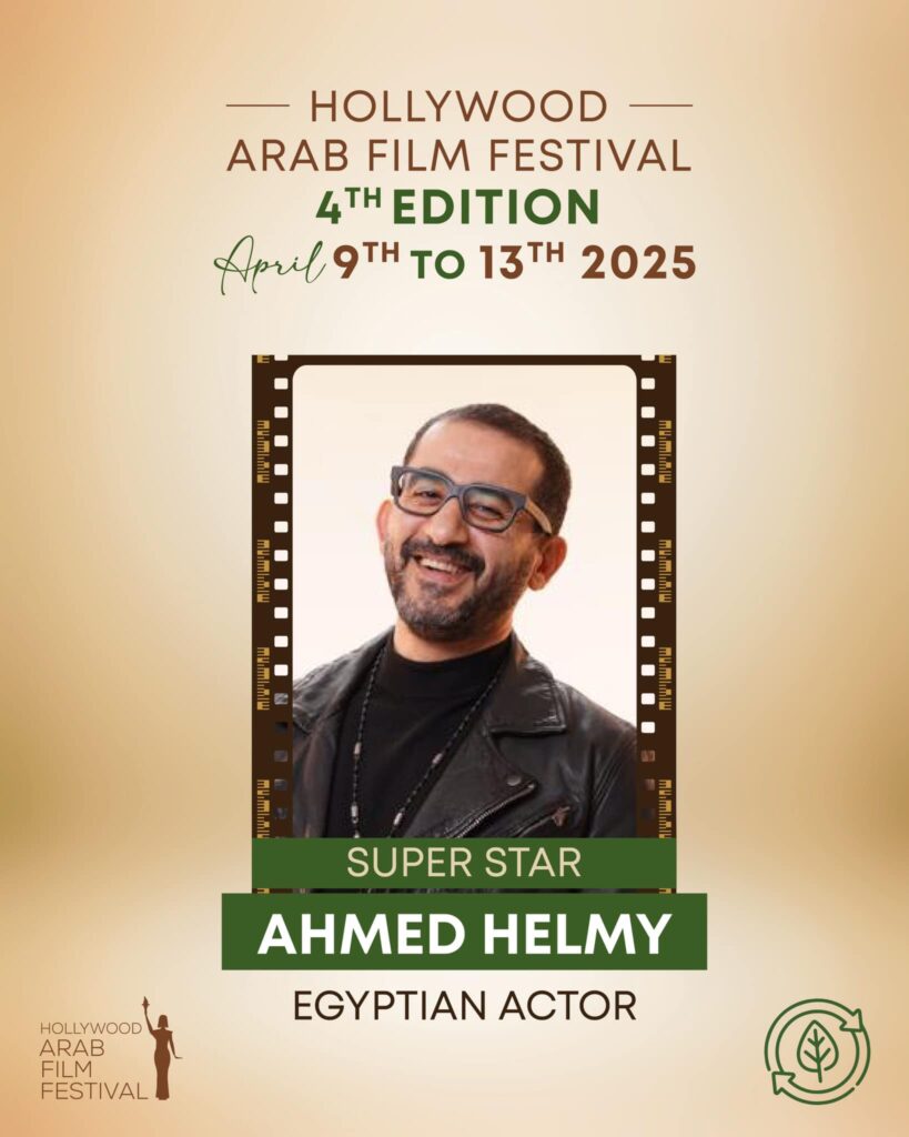متابعة بتجــرد: يحتفي مهرجان هوليوود للفيلم العربي بالنجم المصري أحمد حلمي، بمنحه جائزة الإنجاز خلال دورته الرابعة، التي تُقام في لوس أنجلوس من 9 إلى 13 أبريل في لوك سينما، جليندال.
