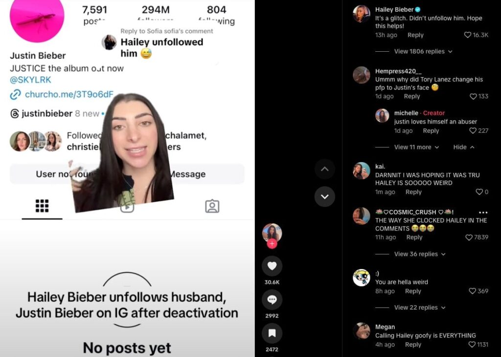 جاء ذلك من خلال تعليق هايلي على مقطع فيديو تم تداوله بشكل واسع عبر تطبيق تيك توك في الساعات القليلة الماضية، حيث أكدت بشكل قاطع أنها لم تلغِ متابعتها لجاستن، معتبرةً أن ما يتم تداوله “مجرد شائعة لا أساس لها من الصحة”.