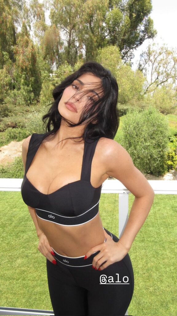 واختارت كايلي لوكًا رياضيًا أنيقًا ارتدت خلاله كروب توب باللون الأسود من دون أكمام مع سروال رياضي ضيق، وتركت شعرها منسدلاً على كتفيها، بينما اعتمدت مكياجًا ناعمًا أبرز ملامحها الطبيعية.