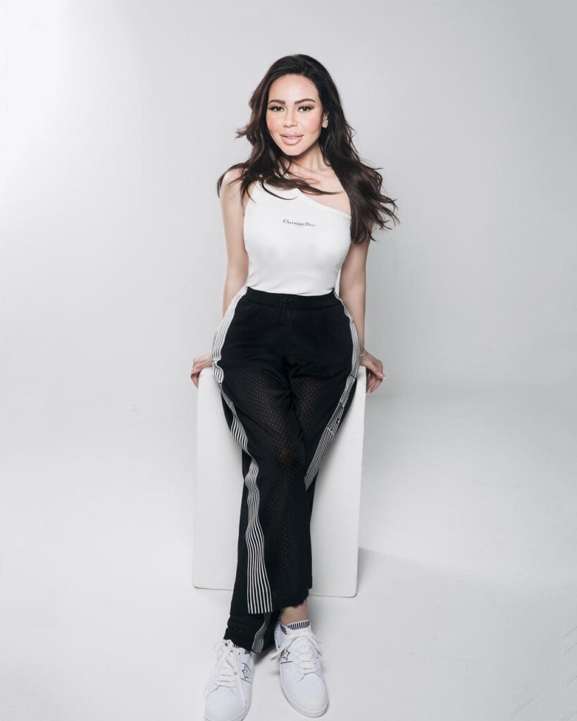 في الصور، تألقت أسما بإطلالة رياضية أنيقة من DIOR، إذ ارتدت توب أبيض بقصّة غير متناسقة (one-shoulder) أضفى عليها لمسة عصرية وراقية، ونسّقته مع بنطال رياضي أسود بلمسات بيضاء جانبية، ما أظهر رشاقتها وأناقتها في آنٍ معًا. وأكملت الإطلالة بحذاء رياضي أبيض يعكس الراحة والعفوية في الأسلوب.