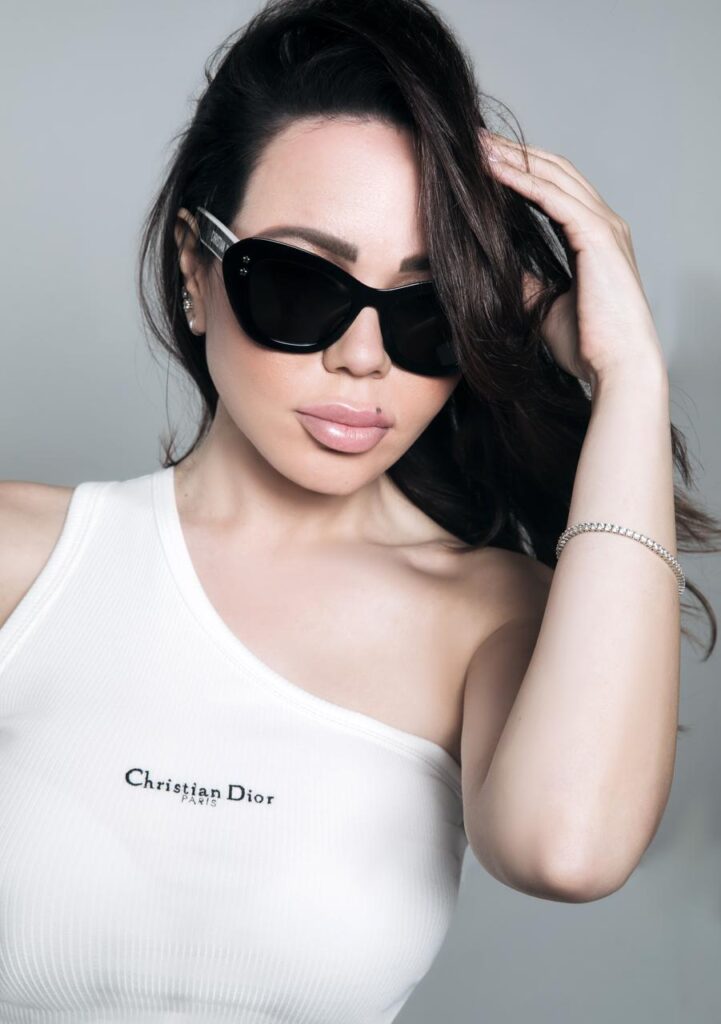 وفي لقطة مقربة أخرى، ظهرت أسما بنظارات شمسية سوداء من ديور أيضاً ذات تصميم كلاسيكي جريء، أضافت المزيد من الغموض والجرأة على إطلالتها، كما ارتدت سوارًا بسيطًا من الألماس على يدها، ما زاد من فخامة الإطلالة دون تكلف.