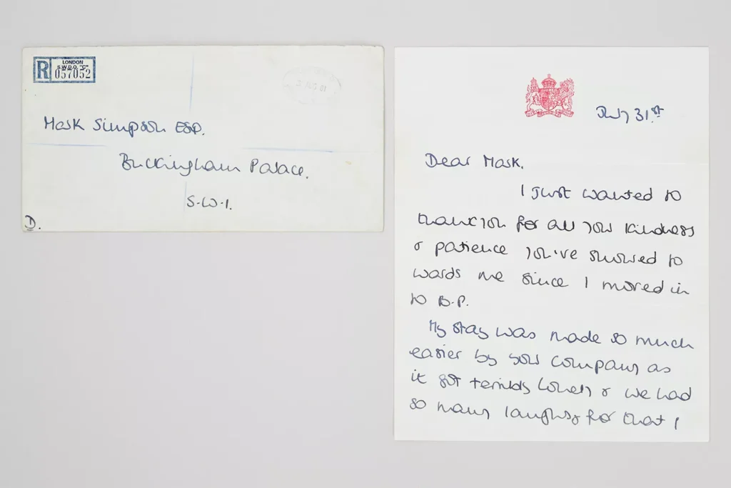 ومن أبرز المعروضات، رسالة نادرة كتبتها الأميرة ديانا بخط يدها بتاريخ 31 تموز/يوليو 1981، بعد يومين فقط من زفافها الأسطوري إلى الأمير تشارلز. وجّهت الرسالة إلى مارك سيمبسون، أحد موظفي قصر باكنغهام، عبّرت فيها عن امتنانها لدعمه خلال فترة انتقالها إلى الحياة الملكية، كاشفة عن مشاعر الوحدة والصعوبة التي واجهتها في الأيام الأولى داخل القصر.