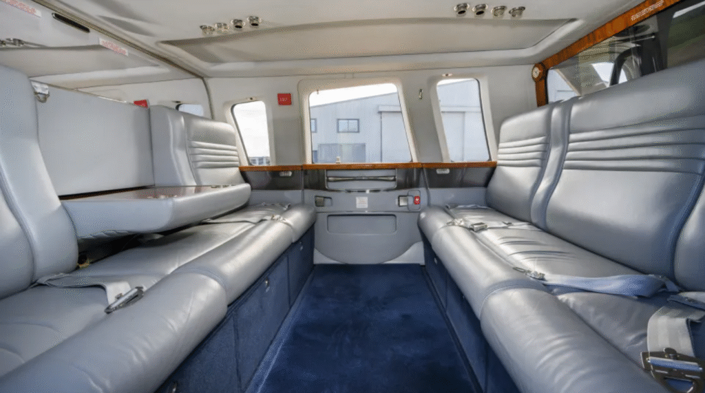 المروحية المعروضة من طراز “سيكورسكي S-76C” تعود لعام 2009، وقد خدمت العائلة المالكة لأكثر من 15 عامًا، واستخدمتها الملكة الراحلة في عدد من الرحلات الرسمية، منها رحلة من ساندرينغهام إلى وندسور قبل وفاتها بأشهر. وتتميّز المروحية بتصميم داخلي فاخر يشمل مقاعد جلدية رمادية وسجادة زرقاء وساعة خشبية ونوافذ مظلّلة.