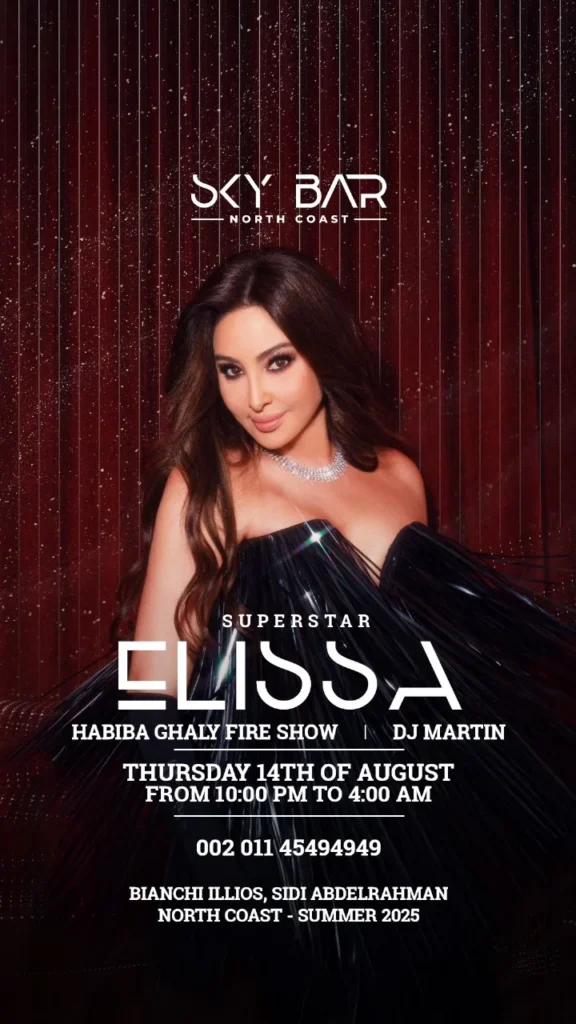 متابعة بتجــرد: تستعد النجمة اللبنانية إليسا للقاء جمهورها المصري مجدداً بعد غياب يقارب العام، إذ تحيي حفلاً غنائياً في الساحل الشمالي مساء الخميس 14 آب/أغسطس الجاري، تقدم خلاله باقة من أشهر وأجمل أغانيها.