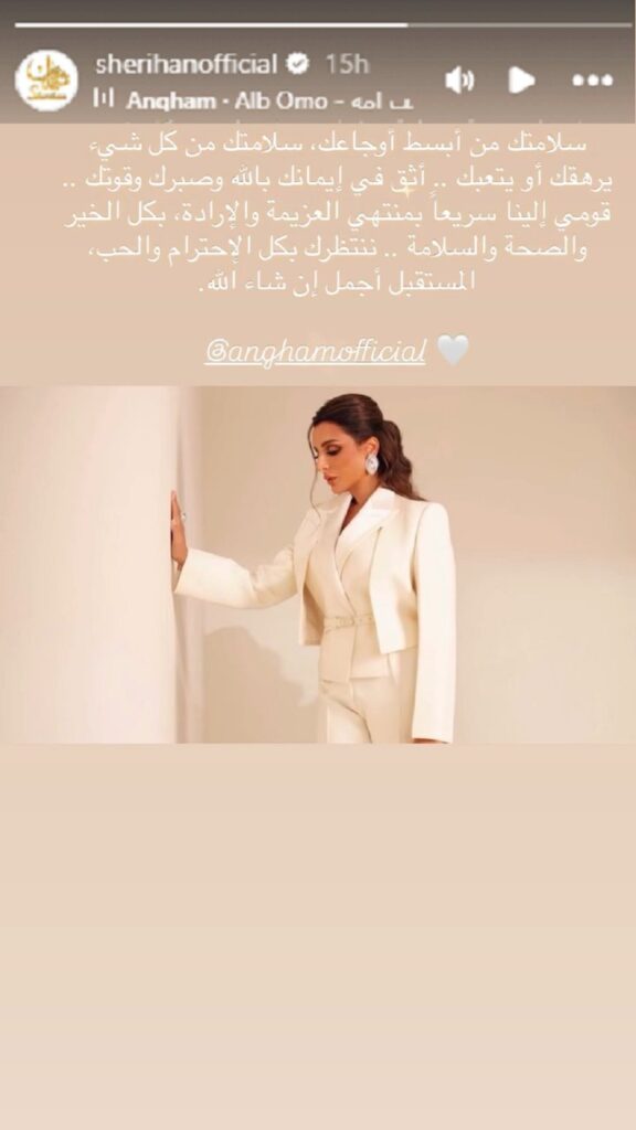 متابعة بتجــرد: وجهت الفنانة شريهان رسالة مؤثرة إلى الفنانة أنغام عبر خاصية القصص المصوّرة على حسابها في “إنستغرام”، عقب عودة الأخيرة إلى مصر بعد رحلة علاجية استمرت نحو شهر في ألمانيا، خضعت خلالها لعملية جراحية دقيقة لاستئصال جزء من البنكرياس.