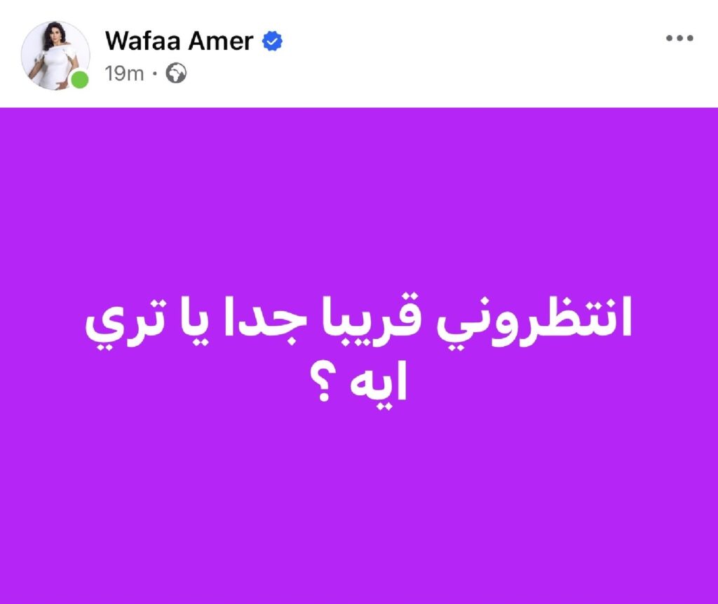 ولم تصدر وفاء عامر حتى الآن أي توضيح رسمي حول تفاصيل المنشور أو توقيت الإعلان عن المفاجأة التي وعدت بها جمهورها.
