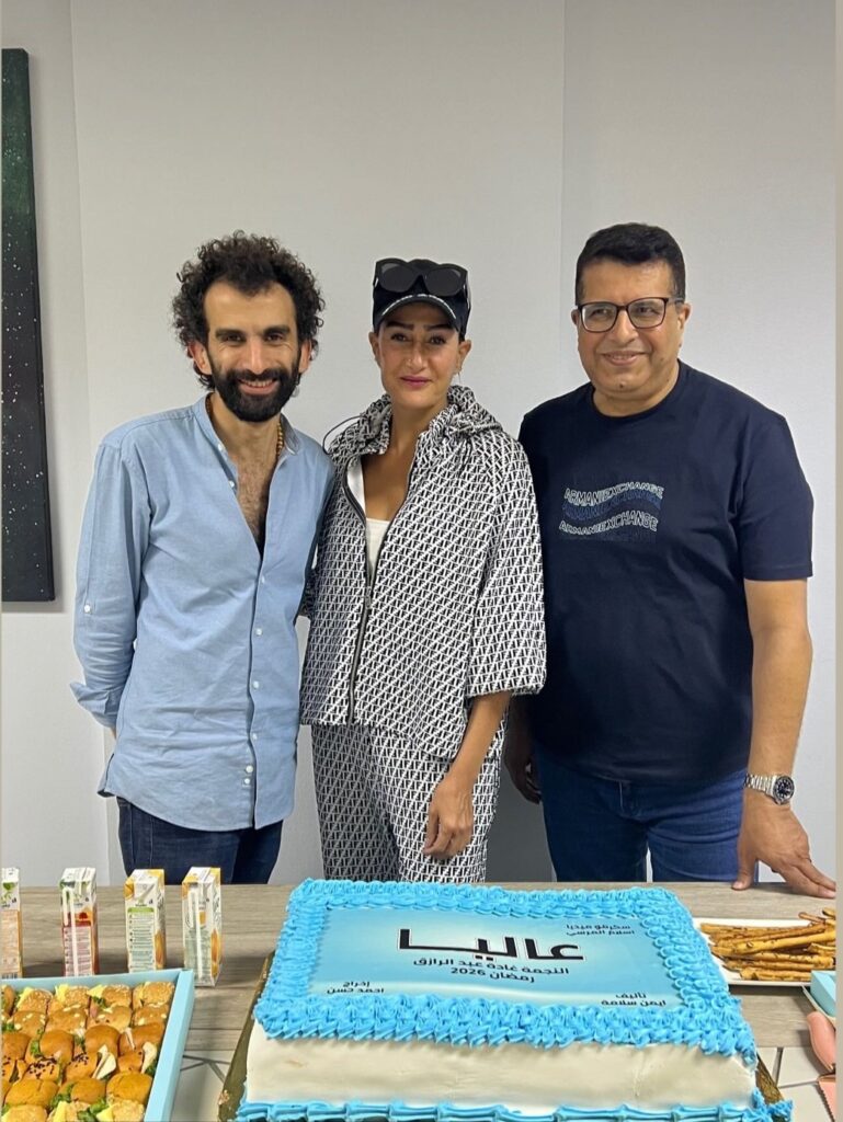 وظهرت غادة في الصور إلى جانب عدد من صنّاع العمل وأمامهم قالب حلوى كبير كُتب عليه اسم المسلسل “عاليا”، مؤكدةً بذلك مشاركتها الرسمية في الموسم الرمضاني 2026. كما أظهرت إحدى الصور مشاركة النجمين محمد رياض وصبري فواز في البطولة، حيث ظهرا بجوار غادة أثناء احتفالهما بقطع قالب الحلوى إيذاناً ببدء التحضيرات.