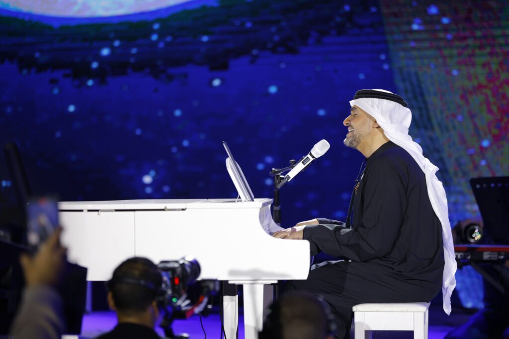 قدّم الجسمي خلال الحفل باقة من أشهر أغنياته التي حفرت مكانها في قلوب الجمهور، إلى جانب مختارات من ألبومه الجديد “HJ2025″، فاستهل وصلته بأغنية “أنا والقمر”، تلتها “أجمل خلق الكون”، في أداءٍ مفعم بالإحساس والعذوبة.