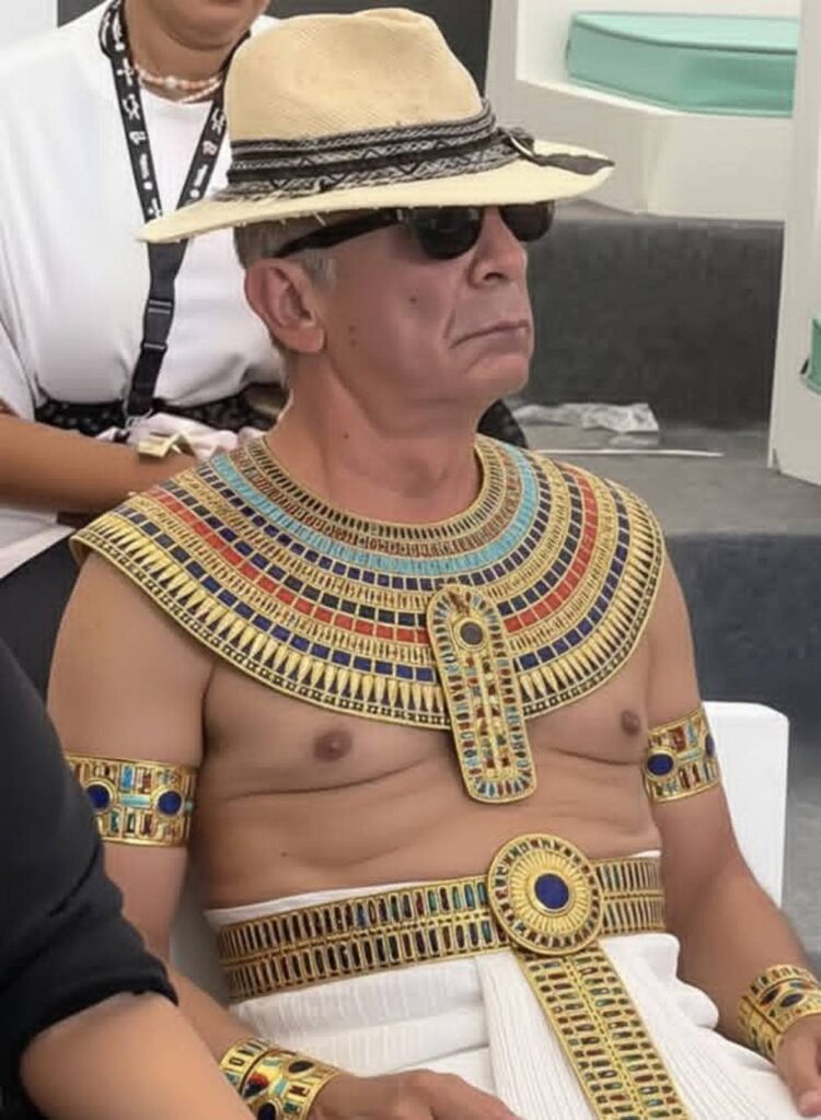 الصورة التي تم تداولها بكثافة بين رواد مواقع التواصل أظهرت الفنان محمود حميدة بملامحه الجادة المعهودة، لكن مرتدياً زيًا فرعونيًا ملكيًا. واستخدم صُنّاع الصورة إحدى لقطاته من مهرجان الجونة السينمائي خلال حضوره إحدى الندوات الفنية، إذ بدت عليه الجدية والصرامة، فيما منحته الملابس التي أضافها الذكاء الاصطناعي مزيجًا غير متوقّع من الهيبة والطرافة.