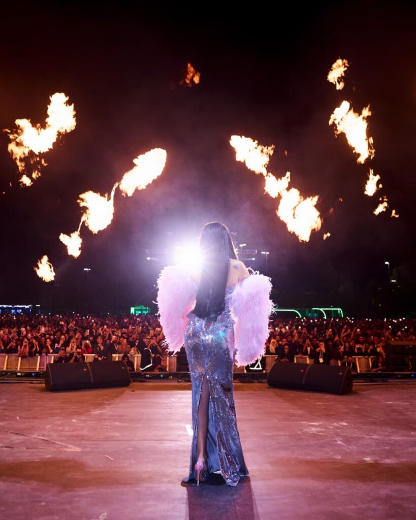 كما شكرت القيّمين على المهرجان وفعاليات “موسم الرياض”، وحيّت معالي المستشار تركي آل الشيخ، الذي بفضل جهوده تحوّلت الرياض إلى أجمل محطة فنيّة في الوطن العربي.