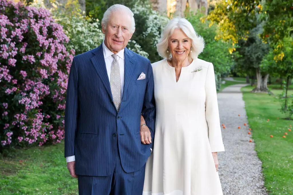 الُتقطت الصورة بعدسة المصوّر كريس جاكسون في فيلا وولكونسكي بالعاصمة الإيطالية روما، خلال زيارة الزوجين لإيطاليا في نيسان/أبريل الماضي. وظهرت الملكة كاميلا مرتدية فستانًا مع معطف باللونين الأبيض والبيج من تصميم آنا فالنتين، ومزيّنًا بدبوس على شكل زهرة الليلك، فيما ارتدى الملك تشارلز بذلة مخططة باللون الأزرق.