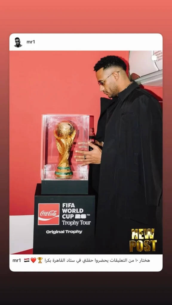 متابعة بتجــرد: نشر الفنان محمد رمضان عبر خاصية القصص المصوّرة على حسابه الرسمي في إنستغرام صورة جمعته بالنموذج الأصلي لكأس العالم، كشف من خلالها عن إطلاق مسابقة لاختيار 20 فائزاً لحضور حفله الأول، المقرر إحياؤه اليوم (الاثنين) في استاد القاهرة الدولي، بعد غياب دام ست سنوات عن إحياء الحفلات في العاصمة المصرية.
