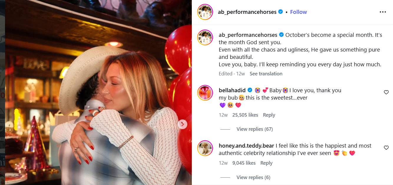 وفي تشرين الأول (أكتوبر) الماضي، كسر بانيويلوس صمته النادر حول علاقتهما، من خلال منشور على “إنستغرام” احتفالًا بذكرى ارتباطهما وبعيد ميلاد بيلا في 9 تشرين الأول، حيث شارك مجموعة صور حميمة جمعتهما، وأرفقها بتعليق قال فيه: “أصبح تشرين الأول شهرًا مميزًا. هو الشهر الذي أرسلكِ الله فيه. وسط كل الفوضى والقبح، منحنا شيئًا نقيًا وجميلاً. أحبكِ يا حبيبتي، وسأذكّرك كل يوم بمدى أهميتك”.
