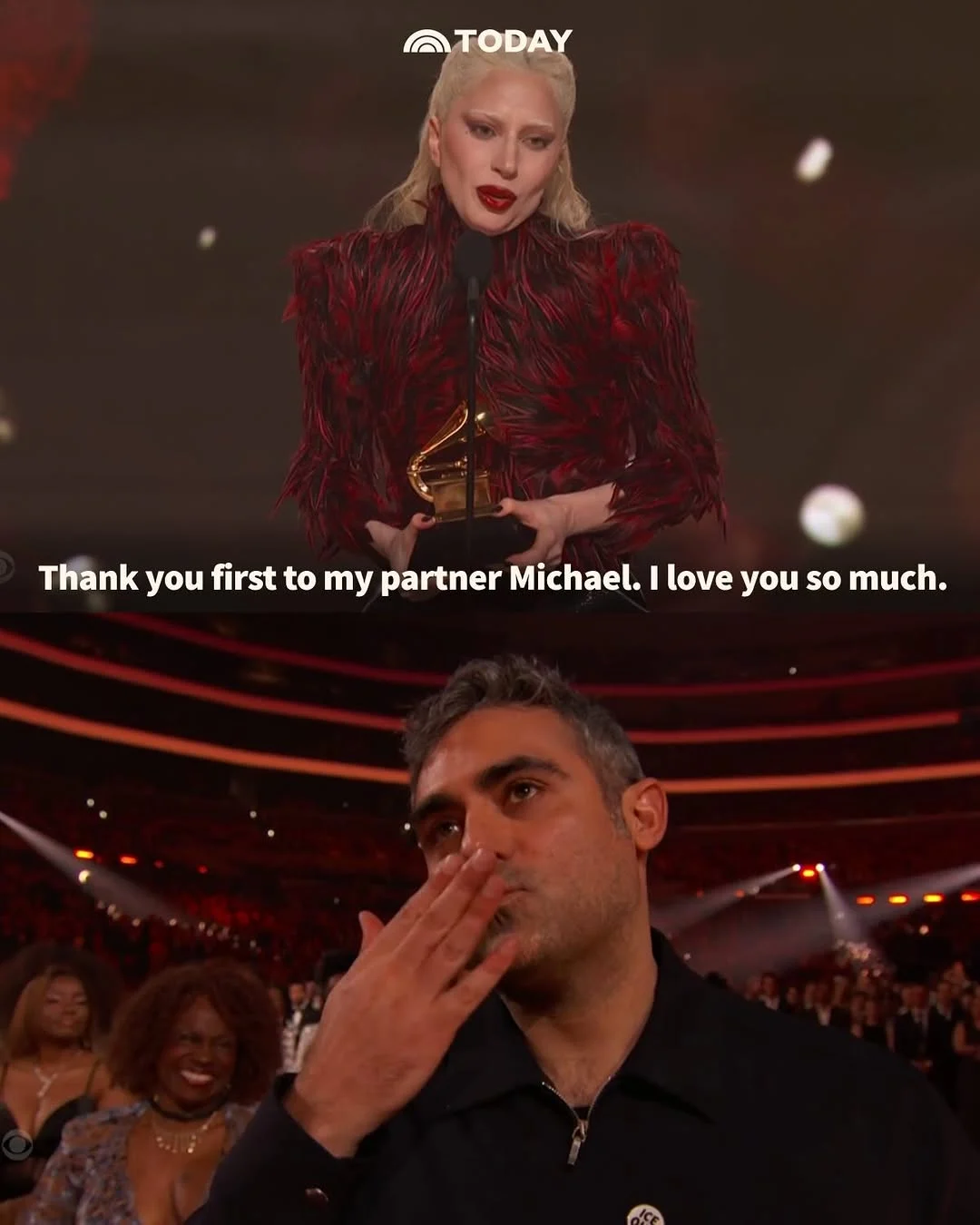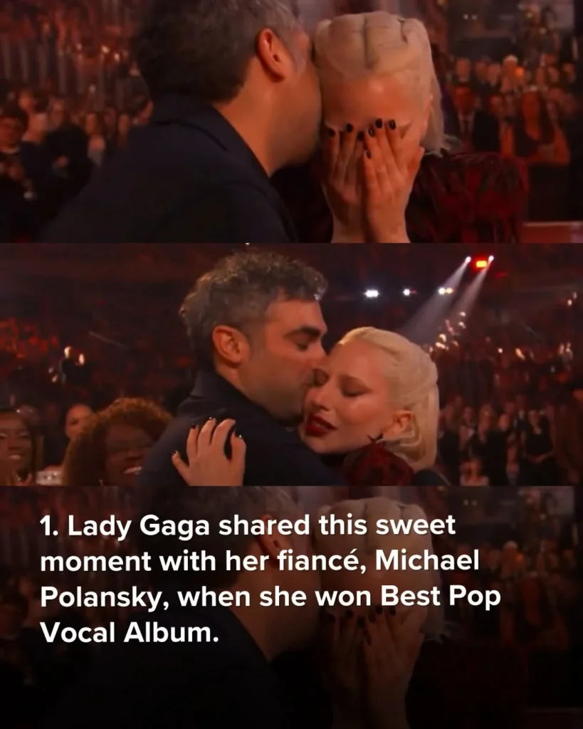 وحرصت ليدي غاغا على توجيه رسالة شكر خاصة لخطيبها مايكل بولانسكي على المسرح، مشيدة بدعمه المستمر لها ومشاركته اليومية في تفاصيل العمل على ألبومها الأخير طوال العام. وأكدت أن وجوده إلى جانبها على الصعيدين الشخصي والمهني كان عاملاً أساسياً في تحقيق النجاحات الأخيرة التي تعيشها.