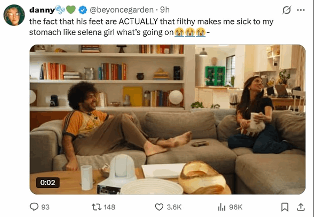 وتساءل كثيرون عمّا إذا كان بلانكو قد سار حافي القدمين خارج المنزل قبل التصوير، في حين عبّر بعض المتابعين عن تعاطفهم مع سيلينا غوميز، إذ كتب أحدهم: “لا أفهم كيف تتعامل سيلينا مع هذا”، بينما ذهب آخر إلى المطالبة بانفصالهما، قائلاً: “عليها أن تجد شخصاً أفضل”.