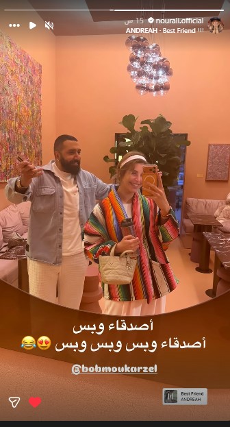 متابعة بتجــرد: أنهت الفنانة نور علي الجدل الذي أثير خلال الفترة الماضية حول طبيعة علاقتها بالمخرج اللبناني بوب مكرزل، بعدما نشرت عبر خاصية “الاستوري” على حسابها الرسمي في Instagram صورة جمعتهما، مرفقة بتعليق حاسم قالت فيه: “أصدقاء وبس.. أصدقاء وبس وبس وبس”.