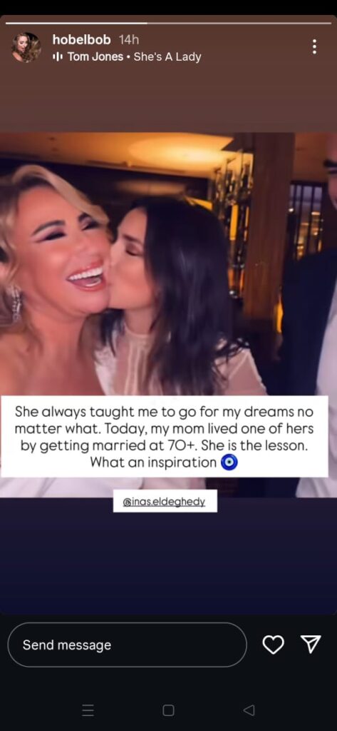 حضرت الحفل ابنة المخرجة حبيبة معوض، وحفيدتها، حيث بدت على ملامحهما علامات الفرح والمباركة للعروسين. وشاركت حبيبة عبر خاصية القصص القصيرة في حسابها على “إنستغرام” مقطع فيديو من عقد القران، وعلّقت عليه برسالة مؤثرة جاء فيها: “كانت دايماً تعلّمني أن أركض وراء أحلامي مهما حصل، واليوم أمي تحقّق أحد أحلامها وتتزوّج وهي في السبعين من عمرها. فهي قدوتي ومثالي وملهمة جداً.”