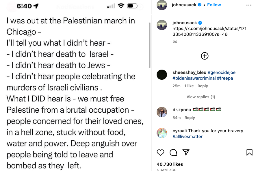 جون كوزاك دعماً لفلسطين: لا شيء يبرّر وحشيّة إسرائيل